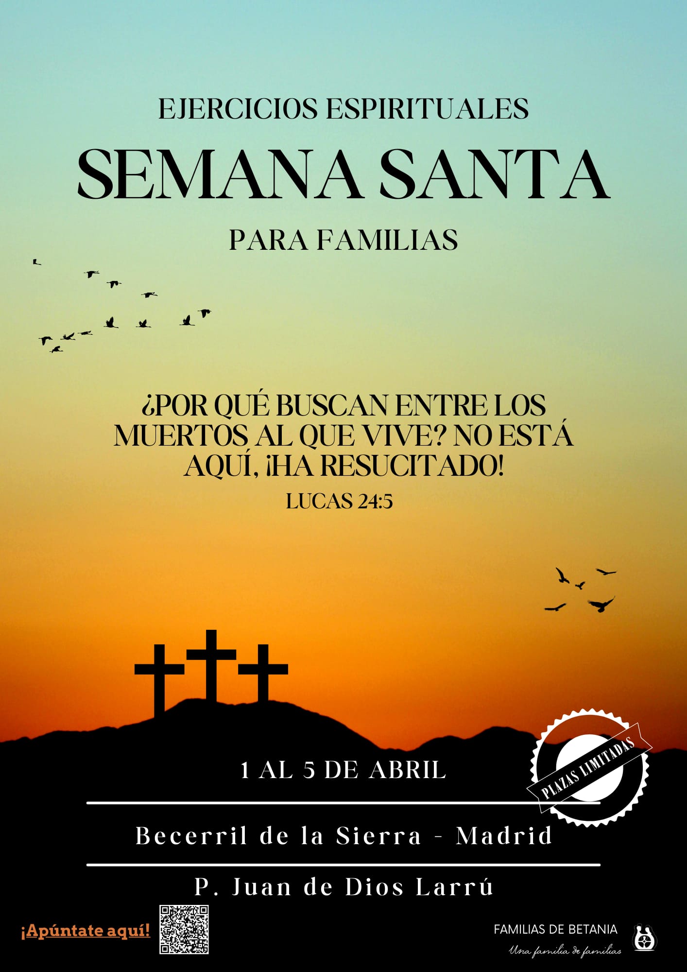 EJERCICIOS ESPIRITUALES SEMANA SANTA 2024 (DEL MIERCOLES 27 AL DOMINGO 31 DE MARZO) PARA FAMILIAS CON NIÑOS Y ADULTOS, dirigidos por el P. Juan de Dios Larrú